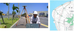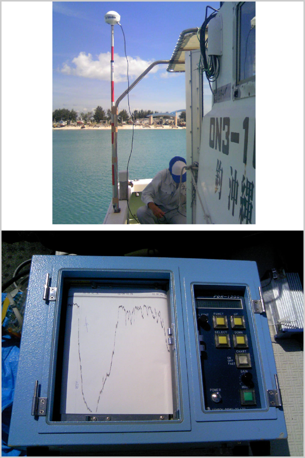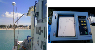 海上誘導ソフトとGPS等を使い海上の位置出し、 漁場の測定や図面作成をします。